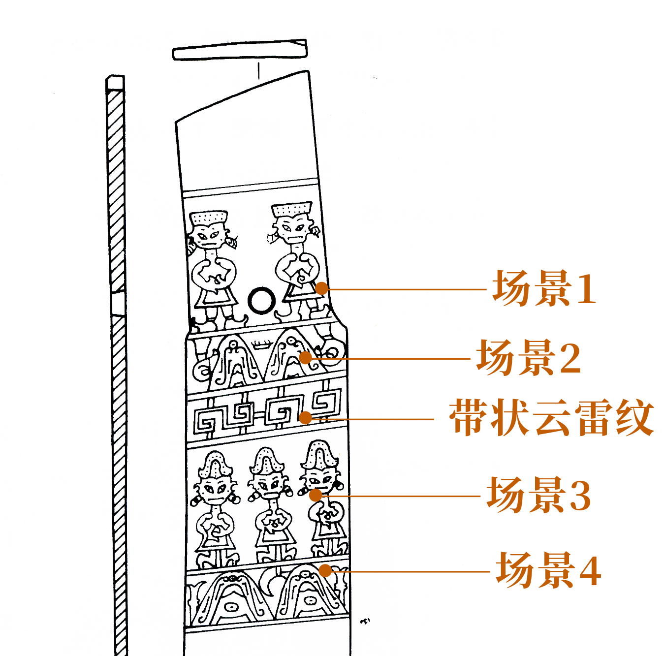 每幅以带状云雷纹分隔为上下两段